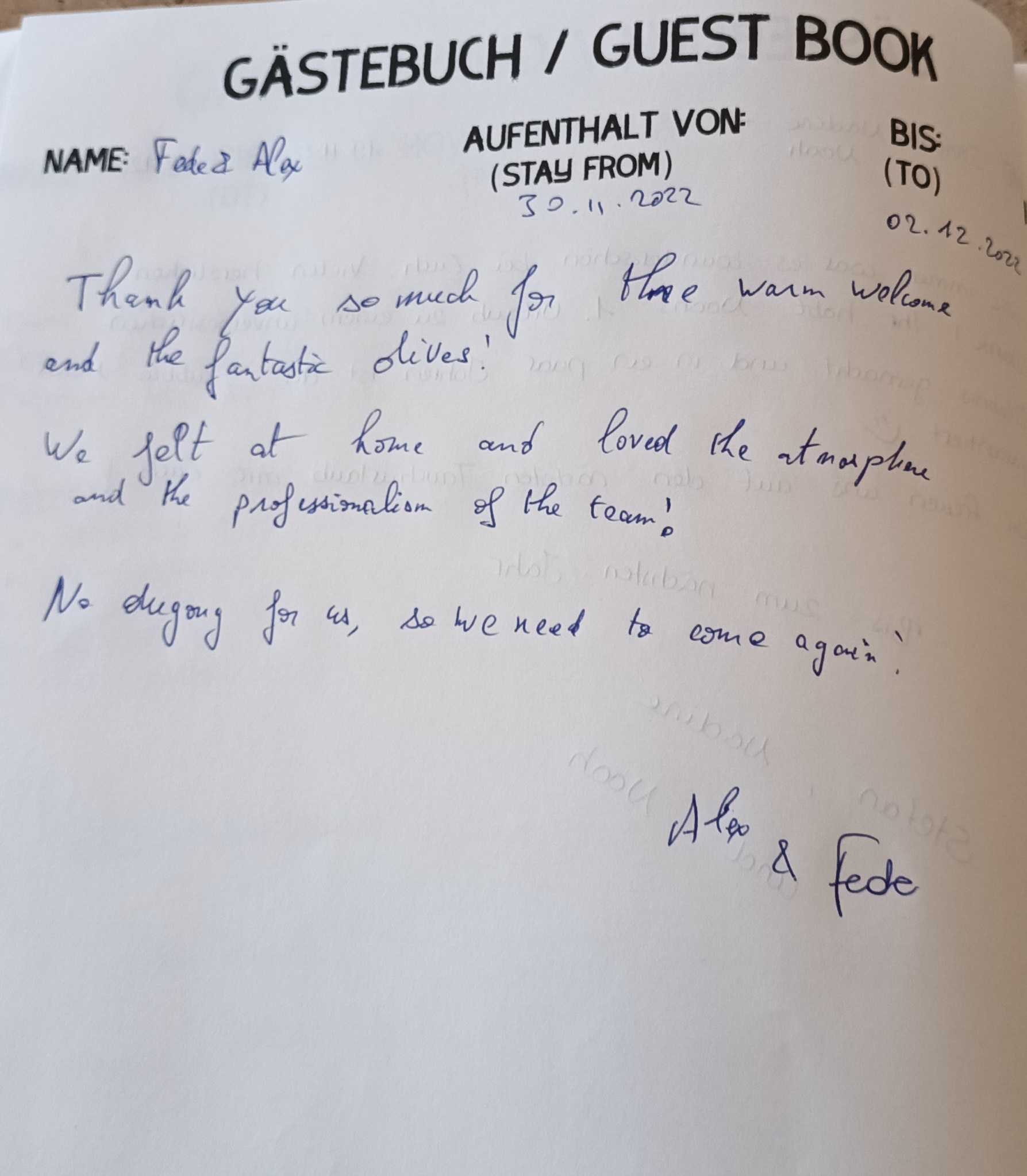 Hier kannst Du die bisherigen Einträge nachlesen – oder natürlich auch direkt vor Ort sobald Du bei uns bist!